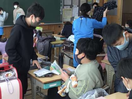 こちらの教室では、友達と楽しそうに会話をしていました。