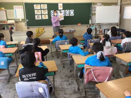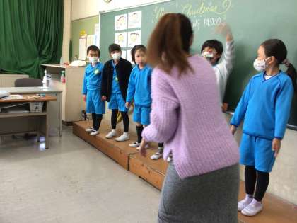 今回は、音楽で学習した子犬のビンゴの歌を英語で歌い、リズムうちをして楽しみました。