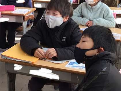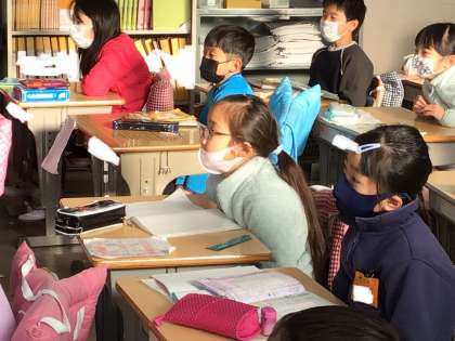 2021年最後の読み聞かせです。読み聞かせボランティアのお母さんが選んでくださったおもしろい本に夢中です。