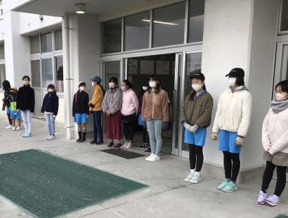 今朝の様子です。寒かったのですが元気にあいさつをしていました。