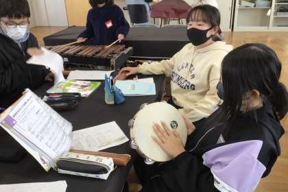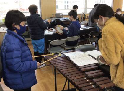 今日は、風を切ってという曲をきいて、その曲に合う楽器を選んで、練習しました。