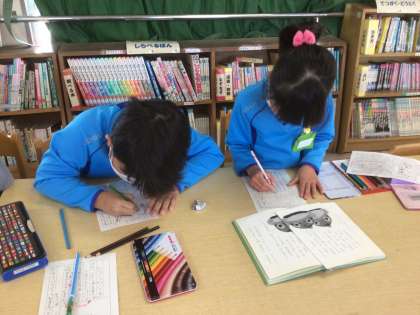 そして、絵と文を工夫して、おすすめカードをかきました。