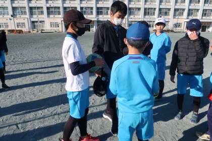 4組の男子は、2チームに分かれてゲームを行いました。