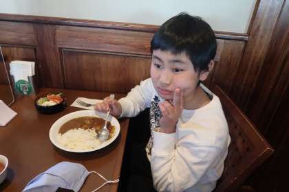 1日目の昼食です。カレーライスを食べていました。