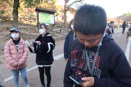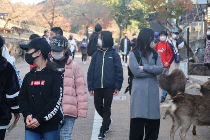 東大寺・奈良公園散策から戻ってきたところです。班で活動しました。