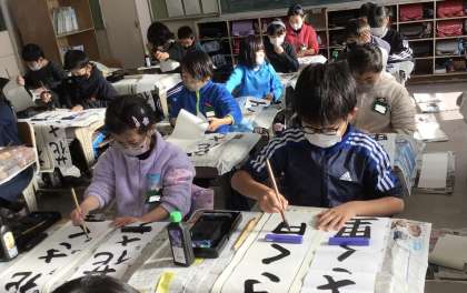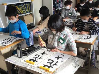 書初め大会を行いました。一画一画に集中して丁寧に書いていました。