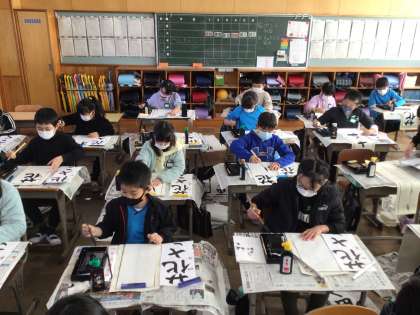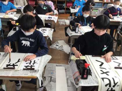 1、2時間目に書き初め大会がありました。
