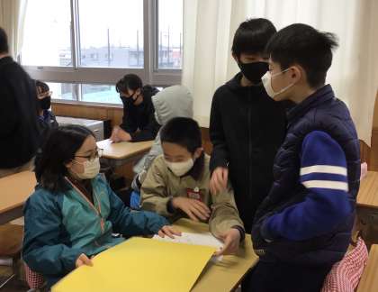 今日の昼放課です。わくわく長縄跳びの準備をしていました。