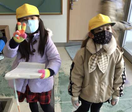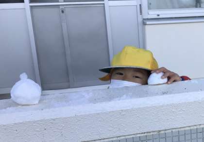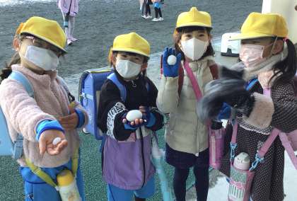 今朝の様子です。今日は、雪で団子を作っていました。また、挨拶ボランティアもしっかり行っていました。