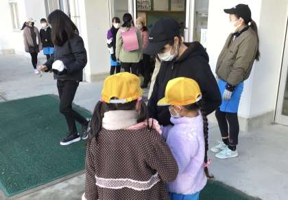 1年生もボランティアをした後、6年生と一緒にミーティングに参加しています。