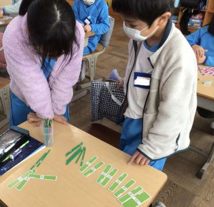 大きい数の復習です。 ゲームを通して、楽しく学んでいます。