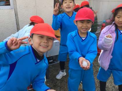 昨日積もった雪を探しに出かけました。あまり残っていませんでしたが、少しの雪でも大喜びの子どもたちでした。