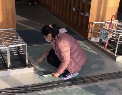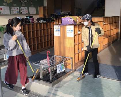 今朝の様子です。昇降口を掃除している6年生です。汚れがひどかったのに気づいて、進んで掃除をしてくれていました。