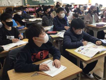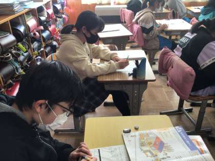 今日の家庭科の授業です。冬を明るく暖かくの単元で、月別電気使用量について考えました。夏よりも冬の方が使用量が多いことに気づきました。