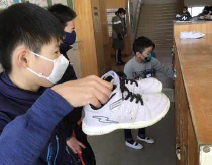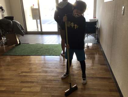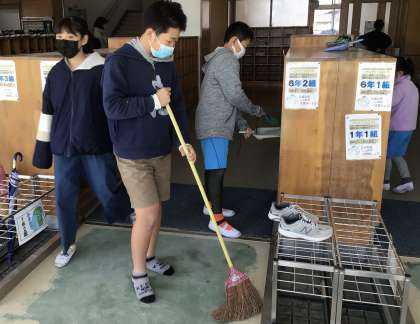 今日の掃除の様子です。東昇降口と正面玄関の掃除です。黙々と隅々まで丁寧にほうきで掃いていました。
