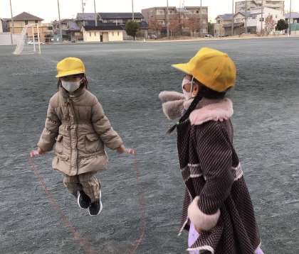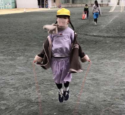 今朝は、挨拶ボランティアをしながら、縄跳びをしていました。