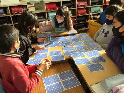 各班でマッチングゲームをしながら拍手が聞こえるなど、