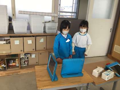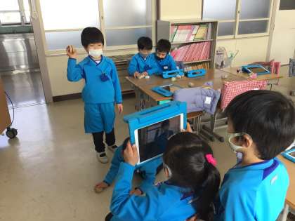 「むかしあそび」の学習の様子です。できるようになった技の動画を撮影しています。来週の持ち帰りの際にぜひご家庭でご覧ください。
