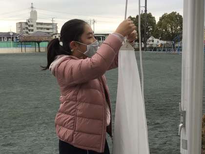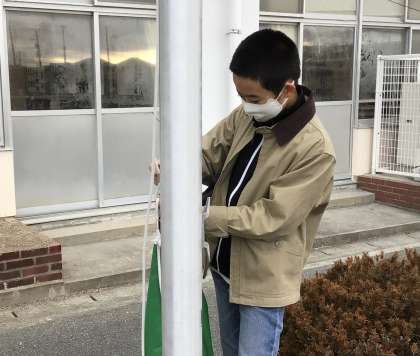 今日も旗が掲げられていないことに気づいた6年生が旗を掲げてくれました。