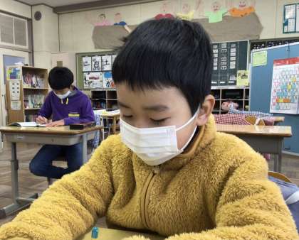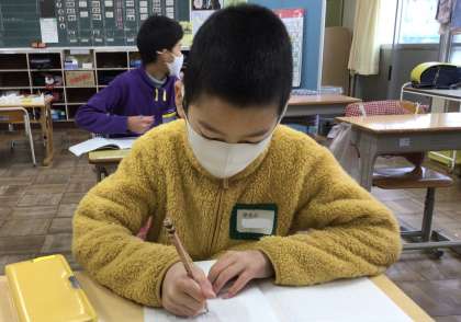 今朝も、明るい雰囲気の中、連絡帳に記入していました。