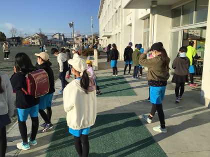 今朝の挨拶ボランティアです。先週よりも暖かい朝でした。