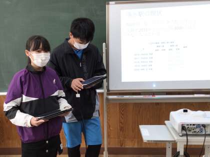この班も浄水駅について調べました。利用客を増やす方法を考え、まとめたことを発表していました。