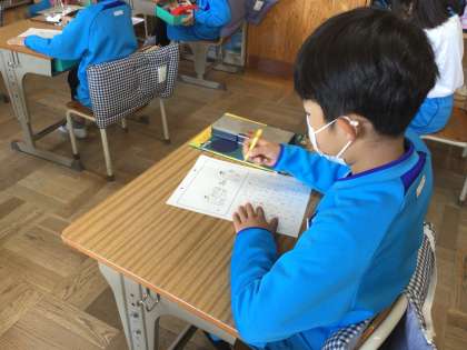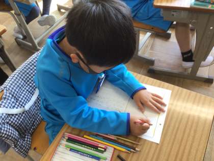むかしあそびのまとめをしました。自分ができるようになったことや、この学習を通して感じたこと、これからどうしたいか、などみんなで考えを伝え合いました。そのあと、絵日記にまとめました。
