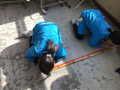 つくったものさしで1mものさしでは測りづらい場所の長さを測りました。
