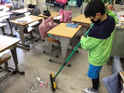 今日は木曜日なので、掃除の時間が設定されていませんが、自分たちで考えて掃除をしています。