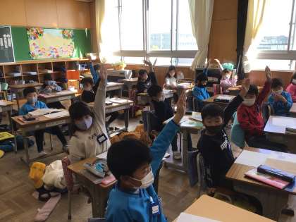 「子どもをまもるどうぶつたち」の学習です。たくさんの子が、手をあげて参加しました。