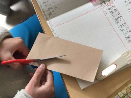 今日は、折り紙を使って、二等辺三角形や正三角形を作りました。