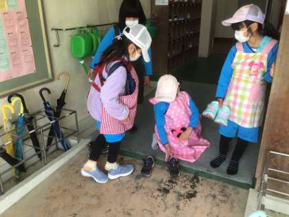 靴の脱ぎ方にも、妊婦さんらしさが見られました。
