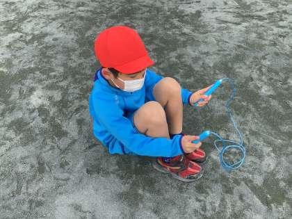 縄の持ち方にも気を付けました。持ち方をかえると、自分の跳びやすい跳び方が分かったようです。