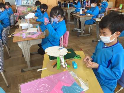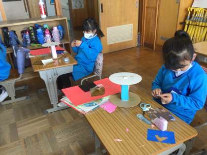 飾りつけを、熱心に行なっています。完成が楽しみです。