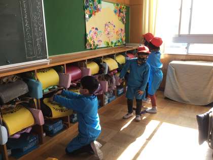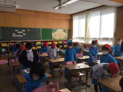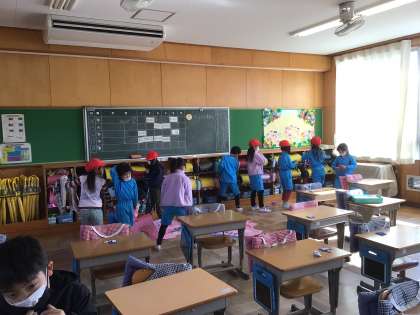 授業が終わり、しっかりあいさつをして、外へ行く準備です!