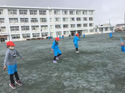 なわとび練習中は、ずっと雪が降っていました。今日は、雪の日ですね。