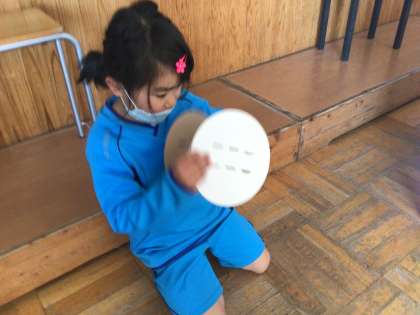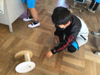 「かみざらコロコロ」の学習の様子です。まずは、台車をどの転がり方にするか、試しています。