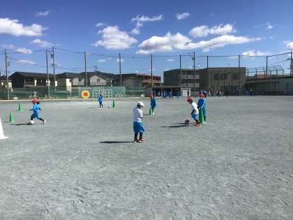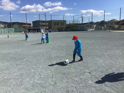 ボールけり遊びをしました。前を見て、友だちにパス練習です。