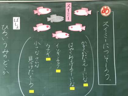 「スイミー」の学習に入りました。今日は、スイミーのことをみんなで想像しました。