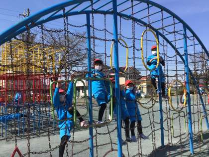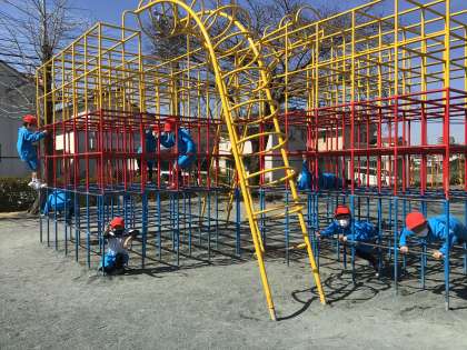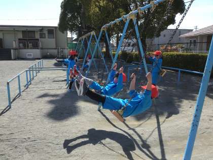 遊具を使って手足を伸ばし、体を動かします。楽しそうです。