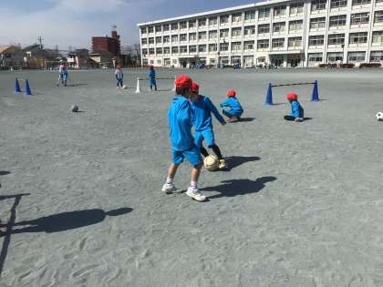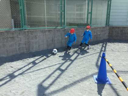 ボールけりゲームをしました。友だちに、パスもまわっていました。