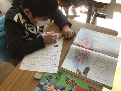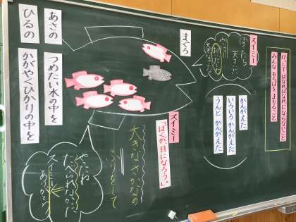 「スイミー」の学習です。みんなで力を合わせて、大きな魚を追い出しましたね。