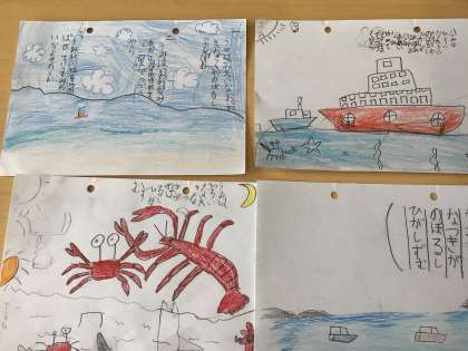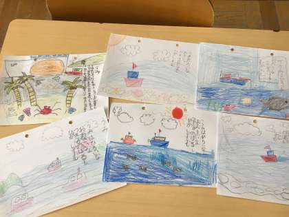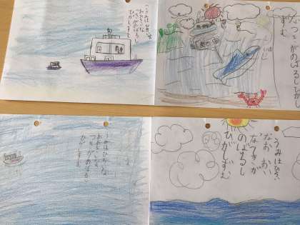 歌カード作りました。今日は、「うみ」です。とってもすてきです。
