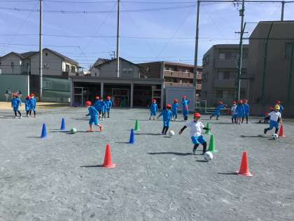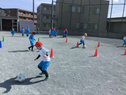 まずは、ぐねぐねコースでドリブルの練習です。