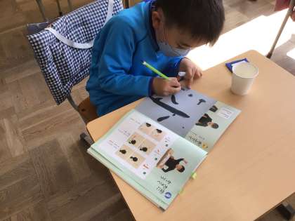 水ふでの学習は、線の終わりを意識しました。