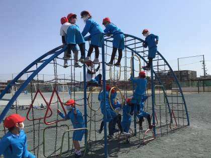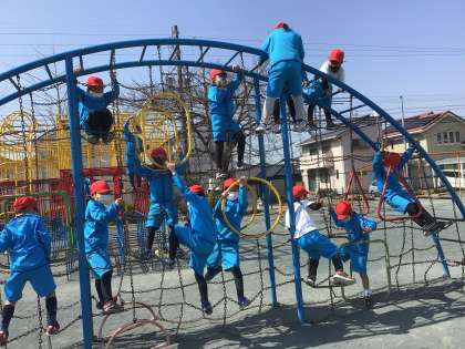 遊具で、体をのばしました。ぶらさがったり、よじのぼったり、楽しみました。