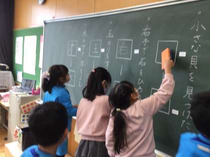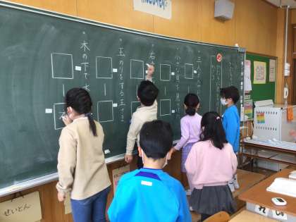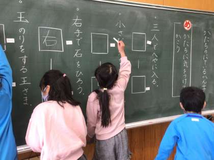 「かたちのにているかんじ」の学習です。黒板に、大きくていねいに書いてくれました。