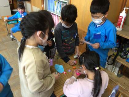 お買い物をして、お金の勉強です。とっても楽しそうです。