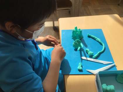 「スイミーのせかい」を粘土で表現しています。自分の好きな場面はどこかな?