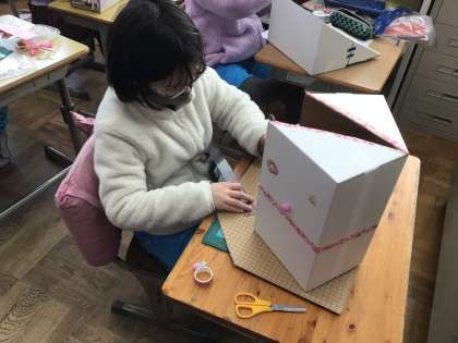 おもしろ段ボールボックスの制作の様子です。